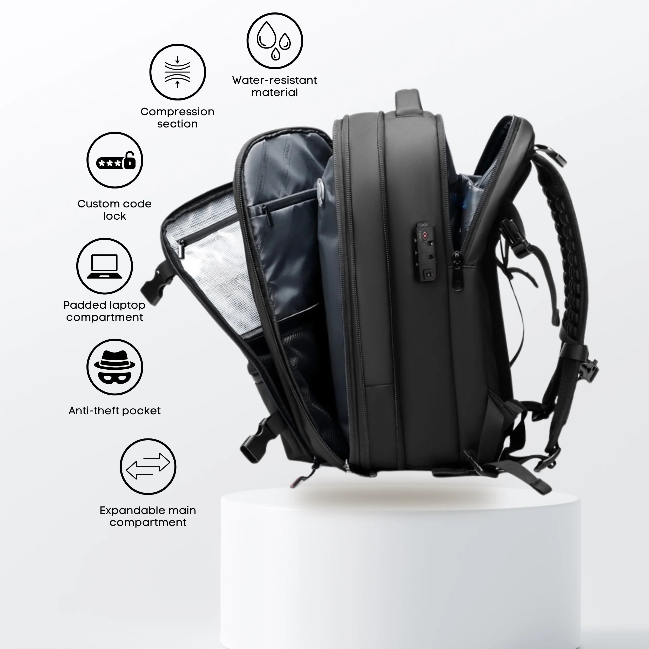 The vacuum sealing technology in our backpack uses a compression system that removes air from the bag's interior, allowing you to compress your belongings and save space.